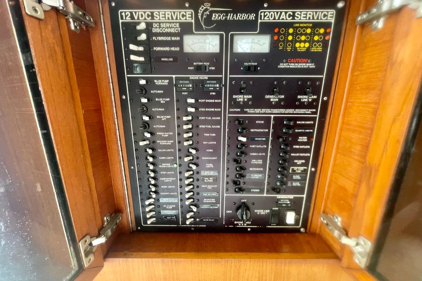 1996 Egg Harbor Golden Egg 38 yacht docked at marina under cloudy sky. • 1996 Egg Harbor Golden Egg 38 yacht docked at a marina, surrounded by other boats. • 1996 Egg Harbor Golden Egg 38 yacht docked at marina, overcast sky. • 1996 Egg Harbor Golden Egg 38 yacht docked at marina, overcast sky. • 1996 Egg Harbor Golden Egg 38 yacht with wooden door and ladder in marina. • 1996 Egg Harbor Golden Egg 38 boat deck with seating and ladder, docked at marina. • 1996 Egg Harbor Golden Egg 38 boat deck with cooler, docked at marina. • 1996 Egg Harbor Golden Egg 38 yacht deck with ladder and wooden door. • Cockpit of 1996 Egg Harbor Golden Egg 38 yacht with steering wheel and controls. • 1996 Egg Harbor Golden Egg 38 yacht cockpit with navigation equipment and marina view. • 1996 Egg Harbor Golden Egg 38 cockpit with navigation instruments and displays. • 1996 Egg Harbor Golden Egg 38 yacht interior with seating and colorful cushions. • Control panel of a 1996 Egg Harbor Golden Egg 38 boat, displaying engine metrics. • Dashboard of a 1996 Egg Harbor Golden Egg 38 with CAT engine display. • 1996 Egg Harbor Golden Egg 38 yacht docked at a marina under cloudy skies. • 1996 Egg Harbor Golden Egg 38 yacht docked at marina, sleek white deck view. • 1996 Egg Harbor Golden Egg 38 yacht docked in a marina, surrounded by other boats. • 1996 Egg Harbor Golden Egg 38 yacht deck view at marina. • Bow view of 1996 Egg Harbor Golden Egg 38 yacht docked in marina. • 1996 Egg Harbor Golden Egg 38 yacht docked at marina, showcasing sleek design. • 1996 Egg Harbor Golden Egg 38 yacht docked at marina, side view. • 1996 Egg Harbor Golden Egg 38 yacht, featuring a sleek white exterior and inviting interior view. • Luxurious interior of 1996 Egg Harbor Golden Egg 38 yacht with cozy seating and elegant decor. • Luxurious interior of a 1996 Egg Harbor Golden Egg 38 yacht with cozy seating and wooden accents. • Luxurious interior of a 1996 Egg Harbor Golden Egg 38 yacht with cozy seating and kitchenette. • Luxurious 1996 Egg Harbor Golden Egg 38 yacht interior with modern kitchen and cozy seating area. • Electrical panel of a 1996 Egg Harbor Golden Egg 38 boat, featuring 12VDC and 120VAC services. • 1996 Egg Harbor Golden Egg 38 yacht interior with wooden cabinetry and modern kitchen amenities. • Interior of 1996 Egg Harbor Golden Egg 38 yacht, featuring stairs and cozy bedroom. • Luxurious cabin interior of 1996 Egg Harbor Golden Egg 38 yacht with cozy bedding. • Cozy cabin interior of 1996 Egg Harbor Golden Egg 38 with striped bedding and wooden furnishings. • Bathroom interior of 1996 Egg Harbor Golden Egg 38 yacht, featuring sink and toilet. • Bathroom interior of 1996 Egg Harbor Golden Egg 38 yacht, featuring sink and shower. • Interior view of 1996 Egg Harbor Golden Egg 38 yacht with wooden paneling and stairs. • Engine room access of 1996 Egg Harbor Golden Egg 38 boat, showing mechanical components. • Control panel of a 1996 Egg Harbor Golden Egg 38 boat with generator switches. • Engine room of 1996 Egg Harbor Golden Egg 38 with Kohler power system and tools. • Engine room of 1996 Egg Harbor Golden Egg 38 with visible components and wiring. • Engine room of 1996 Egg Harbor Golden Egg 38 with visible mechanical components. • Engine room of a 1996 Egg Harbor Golden Egg 38 with visible wiring and equipment. • 1996 Egg Harbor Golden Egg 38 engine room with ventilation and wiring. • Engine room of 1996 Egg Harbor Golden Egg 38 with fuel filters and wiring. • Engine room of 1996 Egg Harbor Golden Egg 38 with diesel fuel filter system. • Engine room of 1996 Egg Harbor Golden Egg 38 with visible components and wiring. • Engine room of a 1996 Egg Harbor Golden Egg 38 with CAT marine engine. • Engine compartment of a 1996 Egg Harbor Golden Egg 38 boat, showcasing mechanical components. •