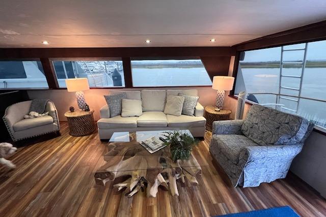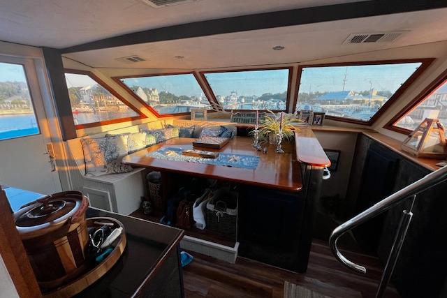 1989 Hatteras 70 Cockpit Motor Yacht docked by waterfront homes. • 1989 Hatteras 70 Cockpit Motor Yacht docked at marina, view from bow. • 1989 Hatteras 70 Cockpit Motor Yacht docked with inflatable boat. • Luxurious interior of 1989 Hatteras 70 Cockpit Motor Yacht with elegant furnishings and scenic views. • Luxurious interior of 1989 Hatteras 70 Cockpit Motor Yacht with elegant seating and decor. • Luxurious interior of 1989 Hatteras 70 Cockpit Motor Yacht with elegant seating and decor. • Luxurious interior of 1989 Hatteras 70 Cockpit Motor Yacht with modern decor and entertainment system. • Luxurious interior of 1989 Hatteras 70 Cockpit Motor Yacht with modern furnishings. • Luxurious interior of 1989 Hatteras 70 Cockpit Motor Yacht with modern furnishings and panoramic windows. • Interior of 1989 Hatteras 70 Cockpit Motor Yacht with modern decor and natural lighting. • Interior of 1989 Hatteras 70 Cockpit Motor Yacht with cozy seating and nautical decor. • 1989 Hatteras 70 Cockpit Motor Yacht interior with panoramic windows and elegant seating area. • Elegant dining setup on 1989 Hatteras 70 Cockpit Motor Yacht, featuring nautical-themed decor. • 1989 Hatteras 70 Cockpit Motor Yacht interior with seating, bar, and scenic marina view. • Cockpit view of 1989 Hatteras 70 Cockpit Motor Yacht with navigation equipment. • Electrical panel inside 1989 Hatteras 70 Cockpit Motor Yacht with wooden cabinetry. • Interior of 1989 Hatteras 70 Cockpit Motor Yacht with elegant dining area and wooden accents. • Interior of 1989 Hatteras 70 Cockpit Motor Yacht with wooden stairs and decor. • Luxurious kitchen interior of 1989 Hatteras 70 Cockpit Motor Yacht with modern appliances. • Interior of 1989 Hatteras 70 Cockpit Motor Yacht with modern kitchen and nautical decor. • Interior of 1989 Hatteras 70 Cockpit Motor Yacht with open kitchen drawers and modern decor. • Interior of 1989 Hatteras 70 Cockpit Motor Yacht with modern kitchen and sleek design. • Luxurious kitchen interior of 1989 Hatteras 70 Cockpit Motor Yacht with modern appliances. • 1989 Hatteras 70 Cockpit Motor Yacht deck with blue cushioned chairs and wooden railings. • 1989 Hatteras 70 Cockpit Motor Yacht docked, featuring a wooden deck and American flag. • Stern view of 1989 Hatteras 70 Cockpit Motor Yacht, "Nother Venture," docked at Isle of Palms. •