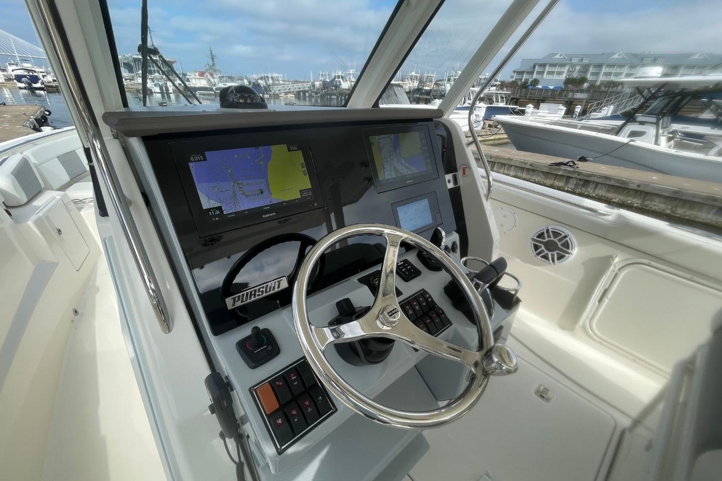 2021 Pursuit S 328 Sport boat docked in marina with clear blue sky. • 2021 Pursuit S 328 Sport boat docked in a marina, surrounded by other vessels. • 2021 Pursuit S 328 Sport boat docked at a marina under a clear sky. • 2021 Pursuit S 328 Sport boat docked in a marina, surrounded by other vessels. • 2021 Pursuit S 328 Sport boat docked at marina with twin Yamaha engines. • 2021 Pursuit S 328 Sport boat with Garmin radar, docked in a marina. • 2021 Pursuit S 328 Sport boat docked, featuring Garmin equipment and American flag. • 2021 Pursuit S 328 Sport boat docked, featuring spacious seating and sleek design. • 2021 Pursuit S 328 Sport boat with spacious seating at a marina dock. • 2021 Pursuit S 328 Sport boat interior with cushioned seating and storage compartments. • 2021 Pursuit S 328 Sport boat docked, showcasing helm and seating area. • 2021 Pursuit S 328 Sport boat with open storage compartment at dock. • 2021 Pursuit S 328 Sport boat anchor system with chrome finish and safety tag. • 2021 Pursuit S 328 Sport boat interior with speaker and seating area. • 2021 Pursuit S 328 Sport boat interior with speaker, docked at marina. • 2021 Pursuit S 328 Sport boat deck with white seating and storage compartments. • 2021 Pursuit S 328 Sport boat interior with seating and speaker, docked at marina. • 2021 Pursuit S 328 Sport boat interior with seating and safety equipment. • 2021 Pursuit S 328 Sport boat helm with advanced navigation displays and controls. • 2021 Pursuit S 328 Sport boat helm with dual navigation screens and steering wheel. • Helm of 2021 Pursuit S 328 Sport boat with navigation screens and steering wheel. • Control panel of 2021 Pursuit S 328 Sport boat with various switches and buttons. • Control panel of 2021 Pursuit S 328 Sport boat with switches and joystick. • 2021 Pursuit S 328 Sport boat dashboard with controls and display screen. • Control panel of 2021 Pursuit S 328 Sport boat with various switches and controls. • 2021 Pursuit S 328 Sport boat audio system displaying FM radio station 104.5. • Compass on 2021 Pursuit S 328 Sport boat dashboard, dockside view. • 2021 Pursuit S 328 Sport boat interior with Garmin electronics and marina view. • 2021 Pursuit S 328 Sport boat docked at marina, viewed from interior. • 2021 Pursuit S 328 Sport boat interior with sleek seating and modern design. • 2021 Pursuit S 328 Sport boat interior with dual seats and steering wheel at marina. • 2021 Pursuit S 328 Sport boat interior at marina, showcasing seating and storage. • 2021 Pursuit S 328 Sport boat interior with open storage compartments. • 2021 Pursuit S 328 Sport boat interior with seating and docked yachts in background. • Control panel of a 2021 Pursuit S 328 Sport boat, featuring engine and generator switches. • Electrical components inside a 2021 Pursuit S 328 Sport boat, featuring wiring and equipment. • 2021 Pursuit S 328 Sport boat with dual Yamaha outboard engines on calm water. • 2021 Pursuit S 328 Sport boat interior with open storage compartments at dock. • 2021 Pursuit S 328 Sport boat cabin entrance with storage baskets visible. • 2021 Pursuit S 328 Sport boat deck with storage compartments and twin engines. • 2021 Pursuit S 328 Sport control panel with switches and warning labels. • Control panel of a 2021 Pursuit S 328 Sport boat with various switches and outlets. • Interior cabin of 2021 Pursuit S 328 Sport boat with cushions and life jackets. •