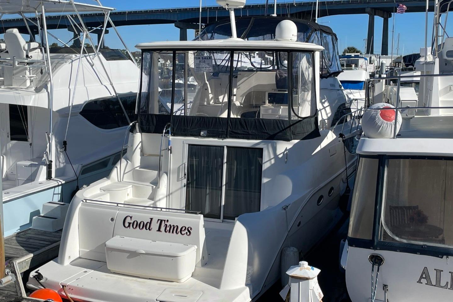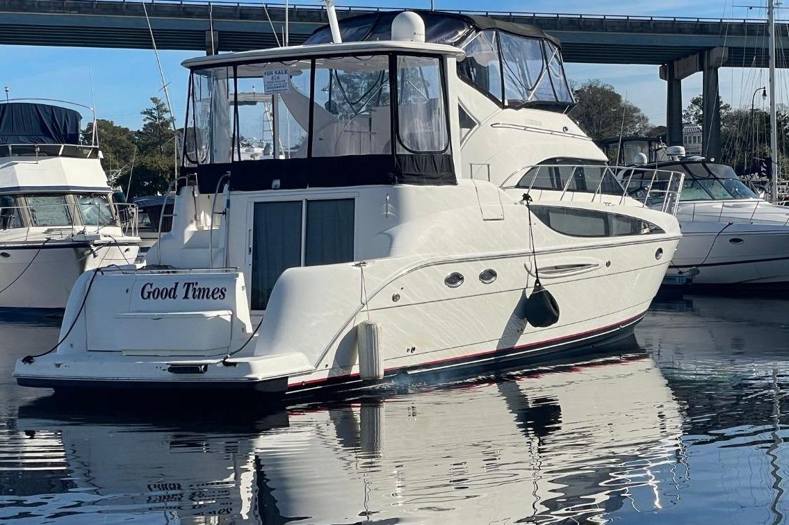 2004 Meridian 459 Motoryacht docked, named "Good Times," with bridge and marina backdrop. • 2004 Meridian 459 Motoryacht named "Good Times" docked in marina. • 2004 Meridian 459 Motoryacht on stands, white hull, blue sky background. • 2004 Meridian 459 Motoryacht "Good Times" on dry dock, for sale sign visible. • 2004 Meridian 459 Motoryacht on trailer, showcasing sleek hull design. • 2004 Meridian 459 Motoryacht "Good Times" docked at marina, rear view. • 2004 Meridian 459 Motoryacht docked at marina, featuring sleek design and spacious cabin. • 2004 Meridian 459 Motoryacht docked at marina, front view. • 2004 Meridian 459 Motoryacht docked at marina, front view. • 2004 Meridian 459 Motoryacht cruising on a calm river with scenic background. • 2004 Meridian 459 Motoryacht helm with navigation instruments and steering wheel. • 2004 Meridian 459 Motoryacht helm with steering wheel, gauges, and control panel. • Luxurious seating area on a 2004 Meridian 459 Motoryacht with quilted upholstery. • Brown and beige quilted seat on 2004 Meridian 459 Motoryacht. • 2004 Meridian 459 Motoryacht interior with cushioned seating and cup holders. • 2004 Meridian 459 Motoryacht docked in a marina, view from the helm. • Interior view of 2004 Meridian 459 Motoryacht with seating and marina backdrop. • 2004 Meridian 459 Motoryacht interior view with water and marina background. • 2004 Meridian 459 Motoryacht interior with seating and table, docked at marina. • Helm of 2004 Meridian 459 Motoryacht with navigation and control systems. • 2004 Meridian 459 Motoryacht dashboard with Raymarine navigation equipment and controls. • Control panel of 2004 Meridian 459 Motoryacht with Raymarine navigation equipment. • Control panel of a 2004 Meridian 459 Motoryacht with gauges and switches. • Close-up of 2004 Meridian 459 Motoryacht RPM gauges on wood panel. • 2004 Meridian 459 Motoryacht interior with stairs, seating, and kitchenette. • Interior of 2004 Meridian 459 Motoryacht with sink, seating, and window views. • 2004 Meridian 459 Motoryacht interior with seating and railing, featuring clear windows and bright lighting. • Luxurious 2004 Meridian 459 Motoryacht interior with leather seating and wooden table. • Luxurious interior of 2004 Meridian 459 Motoryacht with beige leather sofa and decorative pillows. • Luxurious interior of 2004 Meridian 459 Motoryacht with elegant wood finishes and comfortable seating. • 2004 Meridian 459 Motoryacht kitchen with stove, sink, and refrigerator. • 2004 Meridian 459 Motoryacht interior with beige seating and nautical-themed decor. • Luxurious 2004 Meridian 459 Motoryacht bedroom with beach-themed bedding and scenic window view. • 2004 Meridian 459 Motoryacht bedroom with beach-themed bedding and porthole windows. • 2004 Meridian 459 Motoryacht interior with tropical-themed curtains and cozy cabin decor. • Interior of 2004 Meridian 459 Motoryacht with wood cabinetry and compact bathroom. • Interior of 2004 Meridian 459 Motoryacht with tropical-themed curtains and wooden cabinetry. • Interior of 2004 Meridian 459 Motoryacht with wood cabinetry and compact bathroom. • 2004 Meridian 459 Motoryacht interior with wood cabinetry and cozy sleeping area. • 2004 Meridian 459 Motoryacht shower with oval window and modern fixtures. • 2004 Meridian 459 Motoryacht kitchen with stove, wooden cabinets, and porthole window. • Luxurious bedroom interior of 2004 Meridian 459 Motoryacht with colorful bedding and porthole. • 2004 Meridian 459 Motoryacht bathroom with wooden cabinetry and shelving. • Bathroom interior of 2004 Meridian 459 Motoryacht with shower, sink, and toilet. • Laundry area on 2004 Meridian 459 Motoryacht with washing machine and cleaning tools. • Engine compartment of a 2004 Meridian 459 Motoryacht, showcasing mechanical components and piping. • Engine compartment of a 2004 Meridian 459 Motoryacht, showcasing mechanical components and wiring. • Engine room of 2004 Meridian 459 Motoryacht with wiring and fire extinguisher. • Engine room of 2004 Meridian 459 Motoryacht with visible wiring and components. • Engine room of 2004 Meridian 459 Motoryacht, showcasing mechanical components and wiring. • Engine compartment of 2004 Meridian 459 Motoryacht, showing mechanical components and wiring. • Engine room of 2004 Meridian 459 Motoryacht with electrical panel and maintenance supplies. • Engine room of 2004 Meridian 459 Motoryacht, showcasing mechanical components and wiring. • Manufacturer Provided Image • 2004 Meridian 459 Motoryacht on stands in a boatyard under clear blue sky. • 2004 Meridian 459 Motoryacht being lifted by a blue crane at a marina. •