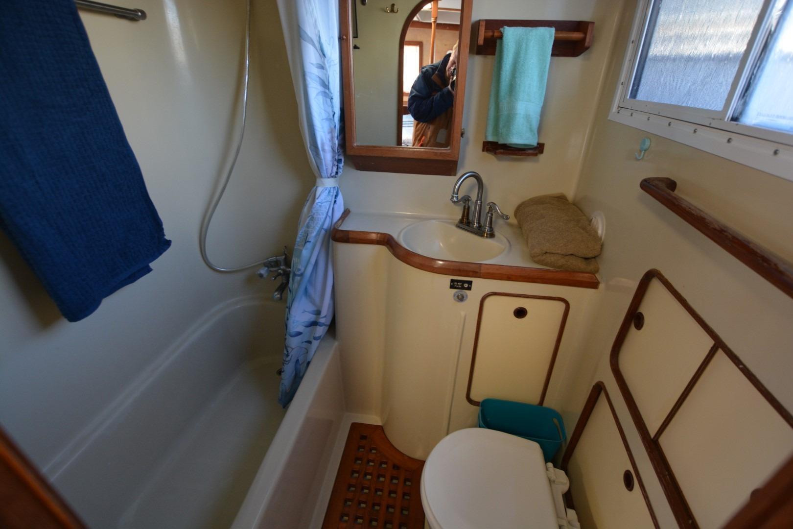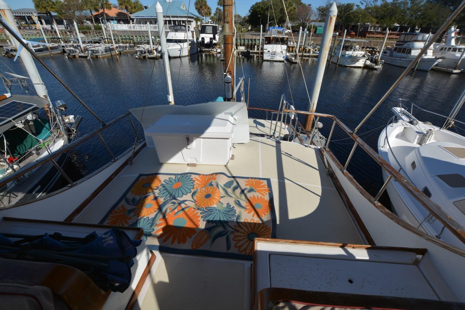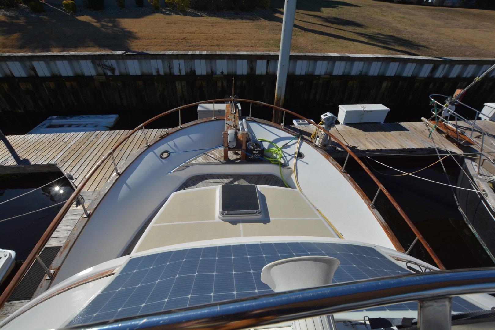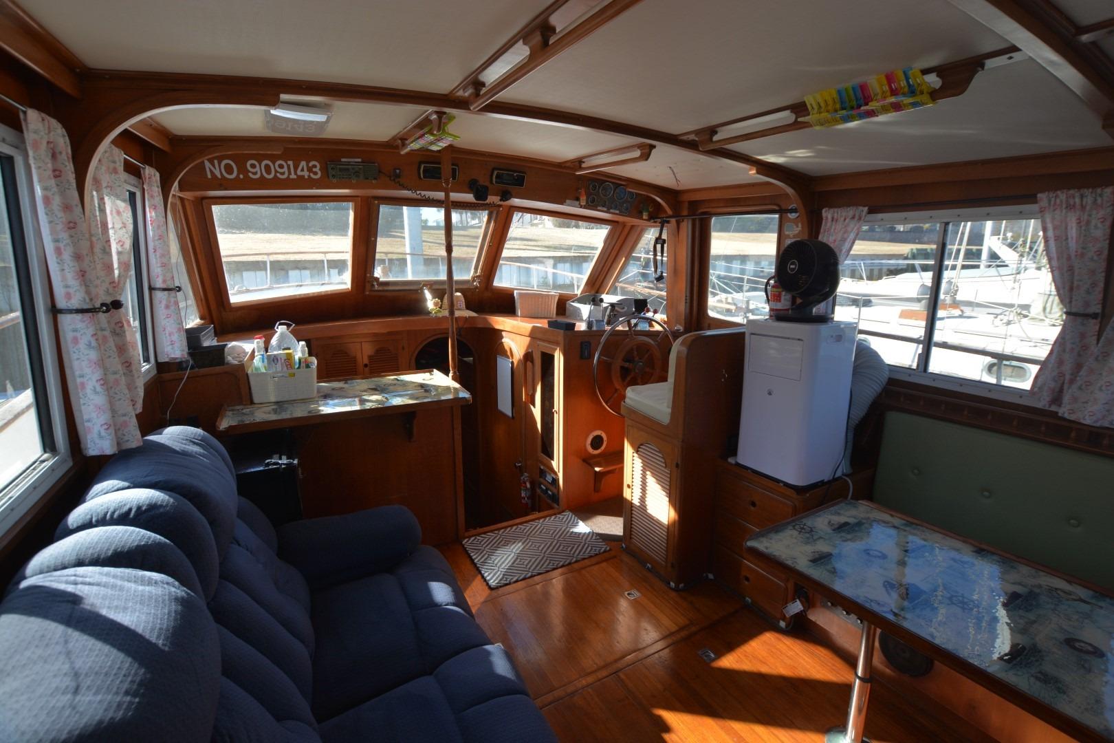 1985 Albin 43 Trawler docked at marina under blue sky with clouds. • 1985 Albin 43 Trawler docked, clear sky, calm water, Sherwood, OR. • 1985 Albin 43 Trawler with solar panel, docked under a clear blue sky. • 1985 Albin 43 Trawler docked, view from above showing deck and solar panel. • 1985 Albin 43 Trawler deck with ropes and wooden railing at dock. • 1985 Albin 43 Trawler deck with floral rug, docked at marina. • 1985 Albin 43 Trawler helm with steering wheel and navigation equipment. • 1985 Albin 43 Trawler deck view with blue cover, docked at marina. • 1985 Albin 43 Trawler deck with wooden railings and docked at marina. • Interior of 1985 Albin 43 Trawler with seating, table, and windows. • Interior of 1985 Albin 43 Trawler with cozy seating and nautical decor. • 1985 Albin 43 Trawler kitchen with stove, microwave, sink, and wooden cabinetry. • 1985 Albin 43 Trawler kitchen with wooden cabinets, stove, microwave, and double sink. • Cozy bedroom in 1985 Albin 43 Trawler with nautical decor and striped bedding. • Cozy bedroom interior of 1985 Albin 43 Trawler with striped bedding and wooden accents. • Bathroom interior of 1985 Albin 43 Trawler with shower, sink, and storage. • Cozy cabin interior of 1985 Albin 43 Trawler with floral bedding and wooden finish. • Laundry area on 1985 Albin 43 Trawler with washing machine and sink. • 1985 Albin 43 Trawler with kayak on deck, scenic river view. • Engine room of 1985 Albin 43 Trawler with red machinery and wiring. • Engine room of 1985 Albin 43 Trawler with red machinery and wiring. • Engine room of 1985 Albin 43 Trawler with red machinery and wiring. •