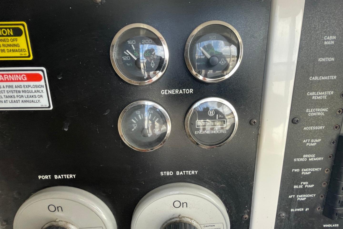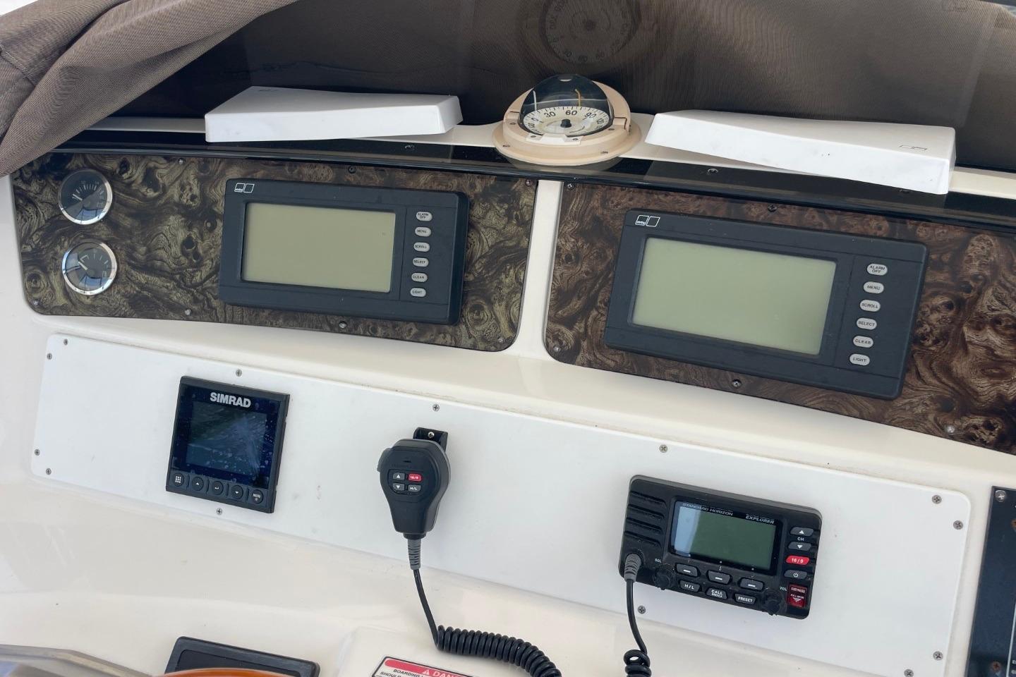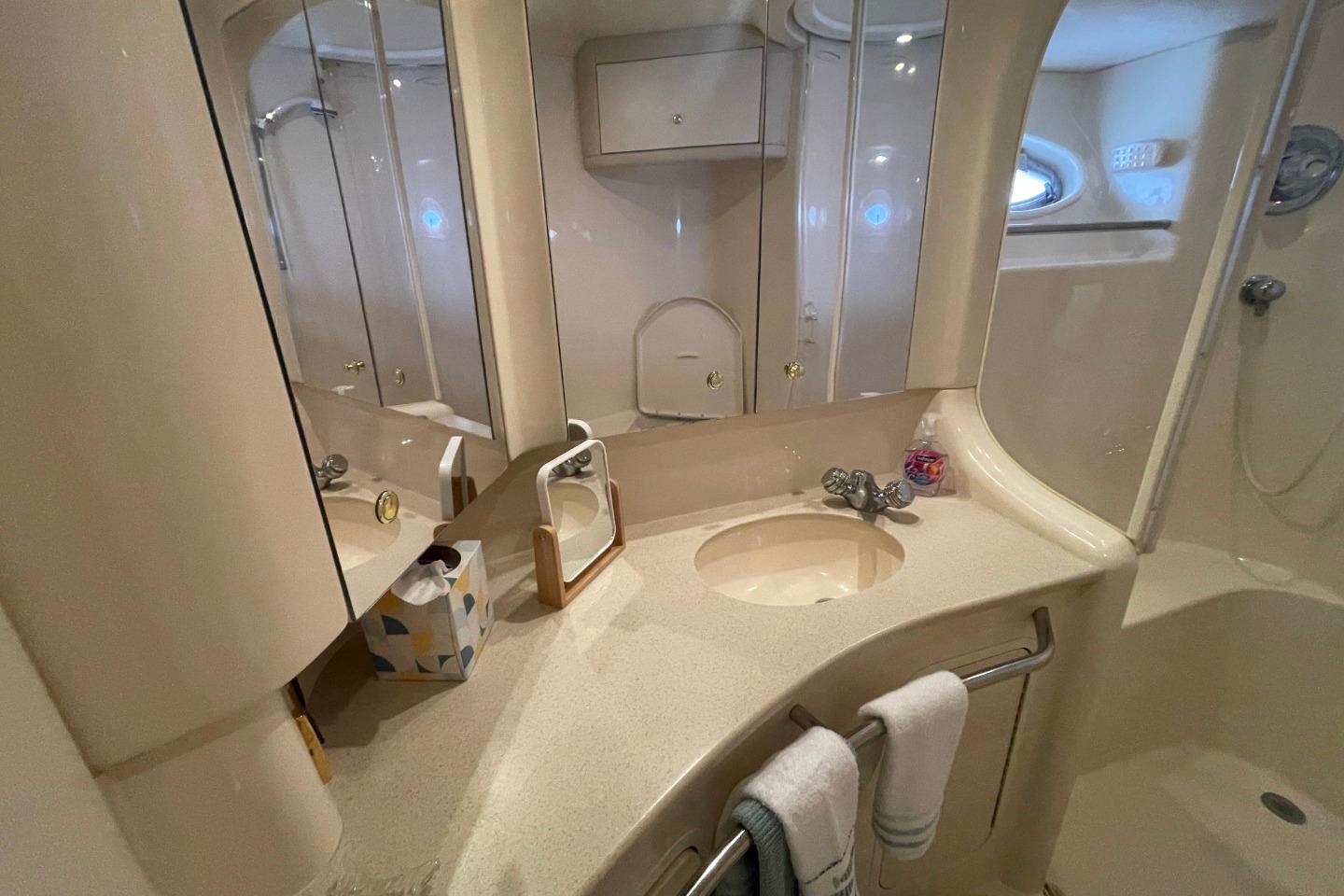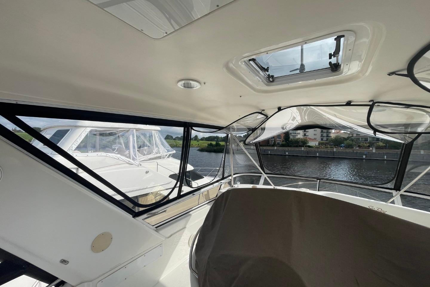 1998 Sea Ray 480 Sedan Bridge yacht docked at marina, surrounded by other boats. • 1998 Sea Ray 480 Sedan Bridge yacht docked at marina, side view. • 1998 Sea Ray 480 Sedan Bridge yacht docked at marina, rear view. • 1998 Sea Ray 480 Sedan Bridge yacht docked at marina, rear view. • 1998 Sea Ray 480 Sedan Bridge yacht docked at marina, overcast sky. • 1998 Sea Ray 480 Sedan Bridge yacht docked at marina, rear view. • 1998 Sea Ray 480 Sedan Bridge yacht docked at marina, rear view. • 1998 Sea Ray 480 Sedan Bridge yacht docked at marina under blue sky. • 1998 Sea Ray 480 Sedan Bridge yacht deck with seating, docked by a marina. • 1998 Sea Ray 480 Sedan Bridge helm with Simrad electronics and wooden steering wheel. • 1998 Sea Ray 480 Sedan Bridge interior with white seating and colorful cushions. • 1998 Sea Ray 480 Sedan Bridge yacht with spacious deck and seating, docked by a bridge. • 1998 Sea Ray 480 Sedan Bridge yacht docked, rear view with "Double Kick Back" name. • 1998 Sea Ray 480 Sedan Bridge yacht with enclosed flybridge under a blue sky. • 1998 Sea Ray 480 Sedan Bridge interior with covered seating, overlooking marina and waterfront buildings. • Interior view of a 1998 Sea Ray 480 Sedan Bridge yacht with waterway backdrop. • Interior view of 1998 Sea Ray 480 Sedan Bridge yacht overlooking marina. • 1998 Sea Ray 480 Sedan Bridge interior with white leather seats at marina. • 1998 Sea Ray 480 Sedan Bridge yacht interior with white seating and waterfront view. • 1998 Sea Ray 480 Sedan Bridge yacht interior with seating and water view. • Isotherm refrigerator on a 1998 Sea Ray 480 Sedan Bridge yacht. • 1998 Sea Ray 480 Sedan Bridge interior with white seating and helm area. • 1998 Sea Ray 480 Sedan Bridge interior with white seating and marina view. • 1998 Sea Ray 480 Sedan Bridge yacht docked at marina, sunny day. • 1998 Sea Ray 480 Sedan Bridge boat with white seating and dock view. • Anchor windlass on 1998 Sea Ray 480 Sedan Bridge boat deck. • 1998 Sea Ray 480 Sedan Bridge anchor system on deck, with stainless steel railings. • Open storage compartment on 1998 Sea Ray 480 Sedan Bridge boat with coiled rope inside. • 1998 Sea Ray 480 Sedan Bridge yacht docked at marina under blue sky. • 1998 Sea Ray 480 Sedan Bridge control panel with gauges and cleaning supplies. • Storage compartment on a 1998 Sea Ray 480 Sedan Bridge with cleaning tools and faucet. • Control panel of a 1998 Sea Ray 480 Sedan Bridge yacht with switches and gauges. • Main distribution panel of 1998 Sea Ray 480 Sedan Bridge yacht, showing AC and DC controls. • 1998 Sea Ray 480 Sedan Bridge interior with branded bags and folding chairs. • Interior of 1998 Sea Ray 480 Sedan Bridge with beige seating and table. • Luxurious interior of 1998 Sea Ray 480 Sedan Bridge yacht with plush seating and elegant decor. • Luxurious interior of a 1998 Sea Ray 480 Sedan Bridge yacht with elegant seating and modern amenities. • 1998 Sea Ray 480 Sedan Bridge interior with kitchen and dining area. • Stovetop on 1998 Sea Ray 480 Sedan Bridge yacht, featuring three burners and control knobs. • Interior view of 1998 Sea Ray 480 Sedan Bridge yacht's dual refrigerators. • Kitchen sink area in 1998 Sea Ray 480 Sedan Bridge yacht, featuring faucet and soap dispenser. • Sharp Carousel convection microwave in 1998 Sea Ray 480 Sedan Bridge kitchen. • Control panel on 1998 Sea Ray 480 Sedan Bridge yacht interior. • Luxurious interior of 1998 Sea Ray 480 Sedan Bridge yacht with comfortable seating. • 1998 Sea Ray 480 Sedan Bridge interior cabin with beige seating and decorative pillow. • Cozy cabin interior of 1998 Sea Ray 480 Sedan Bridge with soft lighting and bedding. • Washing machine inside 1998 Sea Ray 480 Sedan Bridge yacht cabin. • Luxurious 1998 Sea Ray 480 Sedan Bridge yacht bedroom with elegant bedding and ambient lighting. • Luxurious 1998 Sea Ray 480 Sedan Bridge cabin with cozy bed and vintage TV. • Wooden storage cabinet with folded towels and a pillow on a Sea Ray 480 Sedan Bridge. • Thermostat control panel on 1998 Sea Ray 480 Sedan Bridge yacht interior. • 1998 Sea Ray 480 Sedan Bridge bathroom with sink, toilet, and shower. • Bathroom interior of 1998 Sea Ray 480 Sedan Bridge yacht, featuring shower and toilet. • Luxurious bedroom interior of 1998 Sea Ray 480 Sedan Bridge yacht. • Interior cabin storage on 1998 Sea Ray 480 Sedan Bridge yacht. • Luxurious bathroom in 1998 Sea Ray 480 Sedan Bridge yacht, featuring shower and vanity. • Bathroom interior of 1998 Sea Ray 480 Sedan Bridge yacht, featuring toilet and shower. • Luxurious bathroom in 1998 Sea Ray 480 Sedan Bridge yacht, featuring elegant fixtures and ample storage. • Control panel on a 1998 Sea Ray 480 Sedan Bridge yacht interior. • Open cabinet with wooden shelves inside a 1998 Sea Ray 480 Sedan Bridge yacht. • Closet with red jackets and blankets inside a 1998 Sea Ray 480 Sedan Bridge. • Interior of 1998 Sea Ray 480 Sedan Bridge yacht with carpeted stairs and cozy cabins. • Cabinet with Samsung TV and remote controls on a 1998 Sea Ray 480 Sedan Bridge. • 1998 Sea Ray 480 Sedan Bridge audio system with Clarion stereo and components. • Luxurious kitchen interior of 1998 Sea Ray 480 Sedan Bridge yacht. • Luxurious interior of a 1998 Sea Ray 480 Sedan Bridge yacht with modern kitchen and seating. • Luxurious interior of 1998 Sea Ray 480 Sedan Bridge yacht with elegant seating and kitchen area. • Interior view of 1998 Sea Ray 480 Sedan Bridge yacht, showing deck and bridge outside. • Luxurious interior of 1998 Sea Ray 480 Sedan Bridge yacht with modern furnishings. • Control panel of a 1998 Sea Ray 480 Sedan Bridge with Simrad display. • 1998 Sea Ray 480 Sedan Bridge dashboard with navigation instruments and communication devices. • Control panel of a 1998 Sea Ray 480 Sedan Bridge with Detroit Diesel electronic controls. • VHF radio