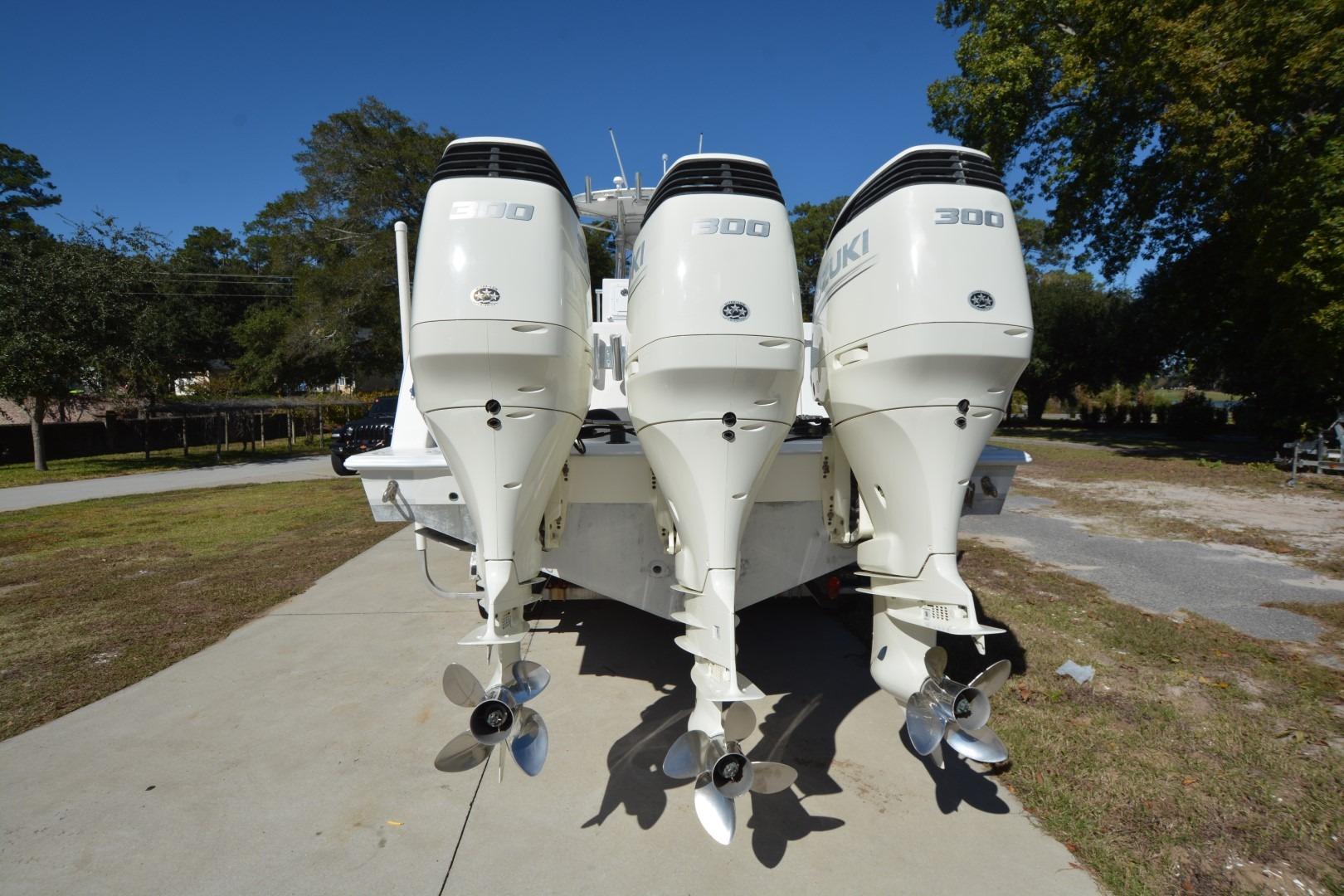 2006 Contender 33 Tournament boat with triple Suzuki engines in a driveway. • 2006 Contender 33 Tournament boat engine, detailed view of internal components. • Close-up of a 2006 Contender 33 Tournament boat engine, showcasing mechanical details. • 2006 Contender 33 Tournament boat engine close-up, showcasing mechanical components and wiring. • 2006 Contender 33 Tournament boat engine, detailed view of motor components. • 2006 Contender 33 Tournament boat engine, detailed view of motor components. • Electrical system of a 2006 Contender 33 Tournament boat, showcasing wiring and components. • Electrical compartment of 2006 Contender 33 Tournament boat with batteries and wiring. • 2006 Contender 33 Tournament boat engine, detailed view of motor components. •
