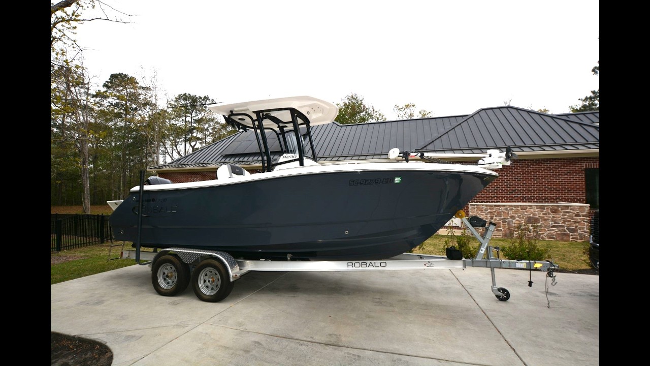 Like new, without the wait. This 2023 Robalo 230 has a Yamaha VMax (51 hours and warranty till 1/8/2029). She has a dual axle trailer and has never been left in the water overnight. Her Shark Grey Hull with Black Metal Work makes her as sexy as you can get.
